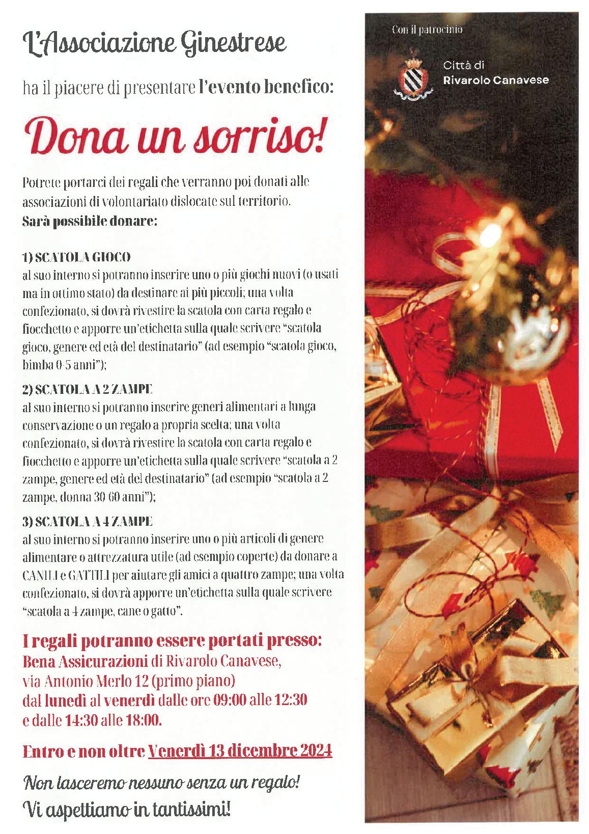 Potrete portarci dei regali che verranno donati alle associazioni di volontariato sul territorio