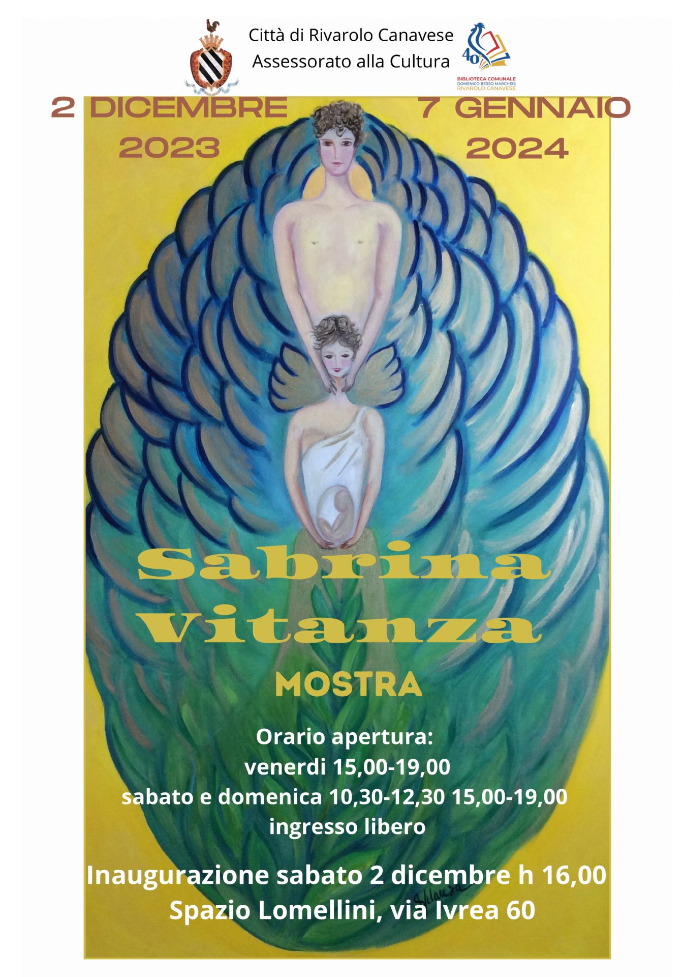 Sabato 2 dicembre presso le sale “Spazio Lomellini” al piano terra del Municipio in via Ivrea 60, sarà inaugurata alle ore 16 la mostra d’arte di Sabrina Vitanza.