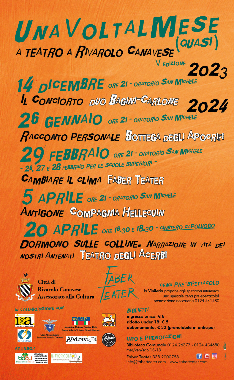 biglietto serale: intero Euro 8 / ridotto under 18 Euro 5
