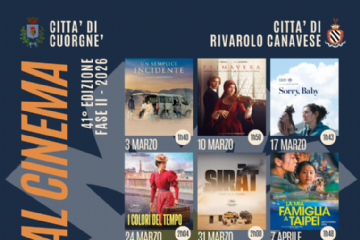 Da martedì 3 marzo, seconda fase della 41a rassegna Due Città al Cinema organizzata dalla Città di Rivarolo Canavese, dalla Città di Cuorgnè e dal Cinema Margherita di Cuorgné.