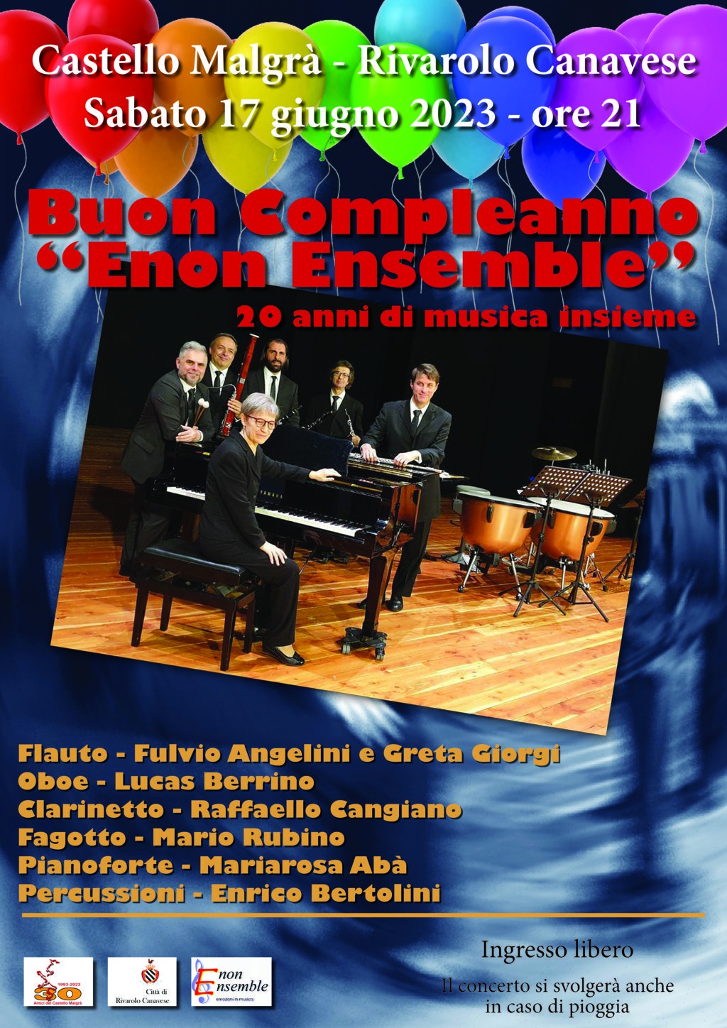 Al Castello Malgrà ore 21, l'Enon Ensemble festeggia 30 anni di musica insieme.
