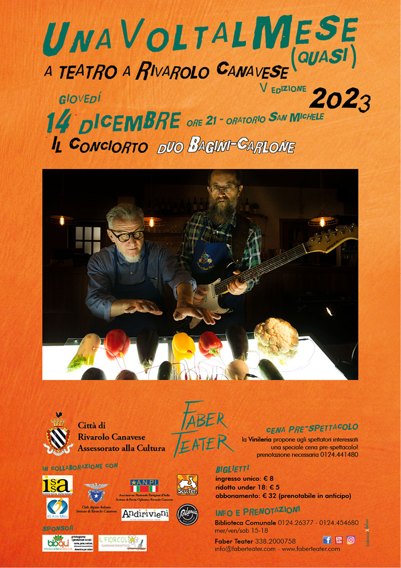 Primo appuntamento della rassegna teatrale Una voltalmese (quasi) proposta e organizzata da Faber Teater e dal Comune di Rivarolo Canavese.