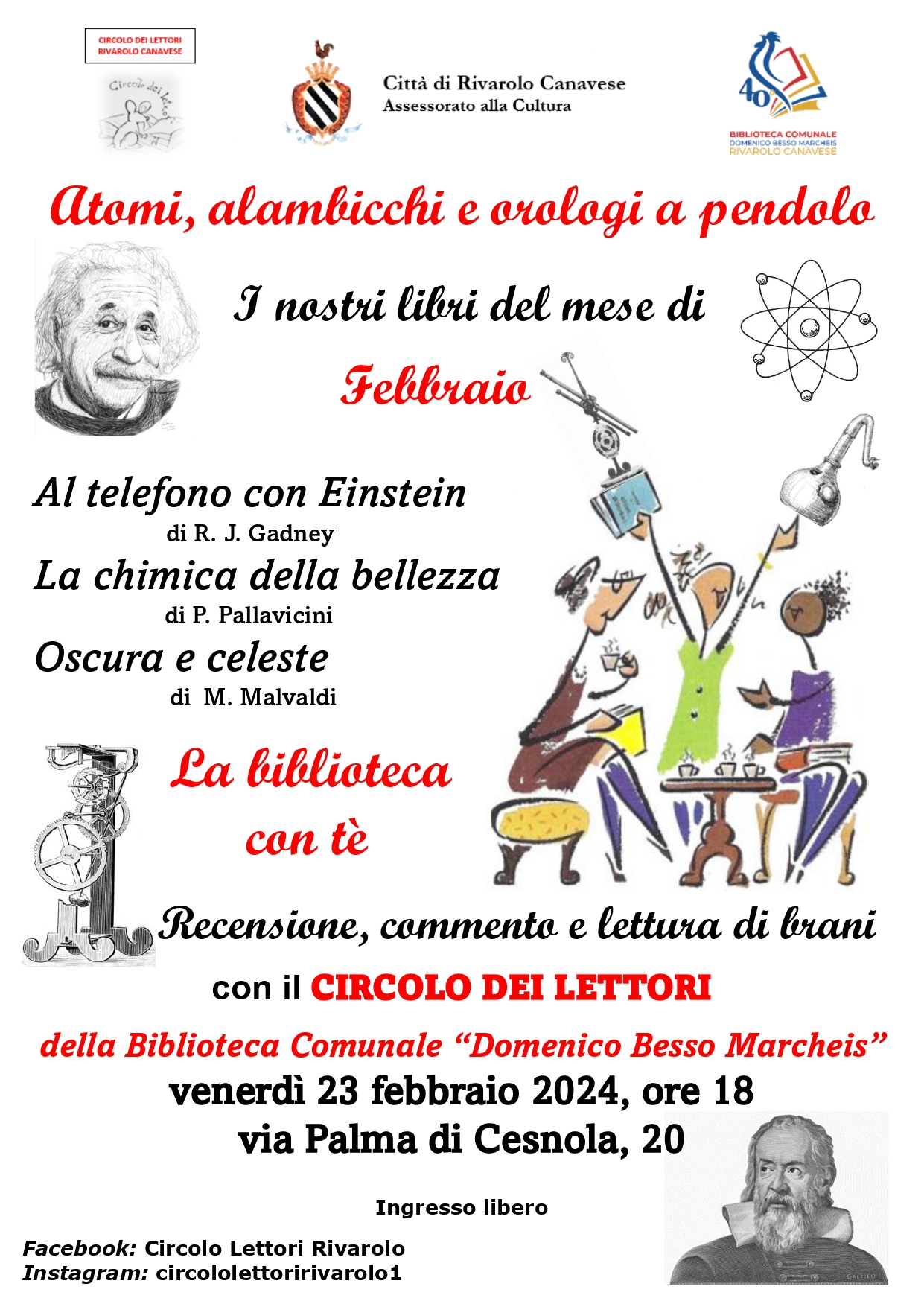 Venerdì 23 febbraio 2024 alle ore 18 presso la Biblioteca Comunale "Domenico Besso Marcheis" (via Luigi Palma di Cesnola 20) si terranno le Letture ad alta voce a cura del Circolo dei Lettori della Biblioteca.