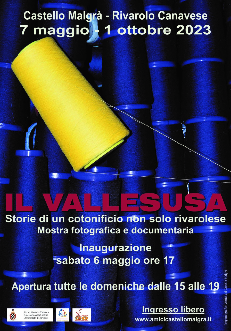 Al Castello Malgrà di Rivarolo Canavese dal 7 maggio al 1° ottobre è visitabile la mostra "Il Vallesusa, storie di un cotonificio non solo rivarolese", per ripercorrere attraverso foto e documenti la memoria di una delle principali industrie del Piemonte tra la metà del 1800 sino al fallimento nel 1965.